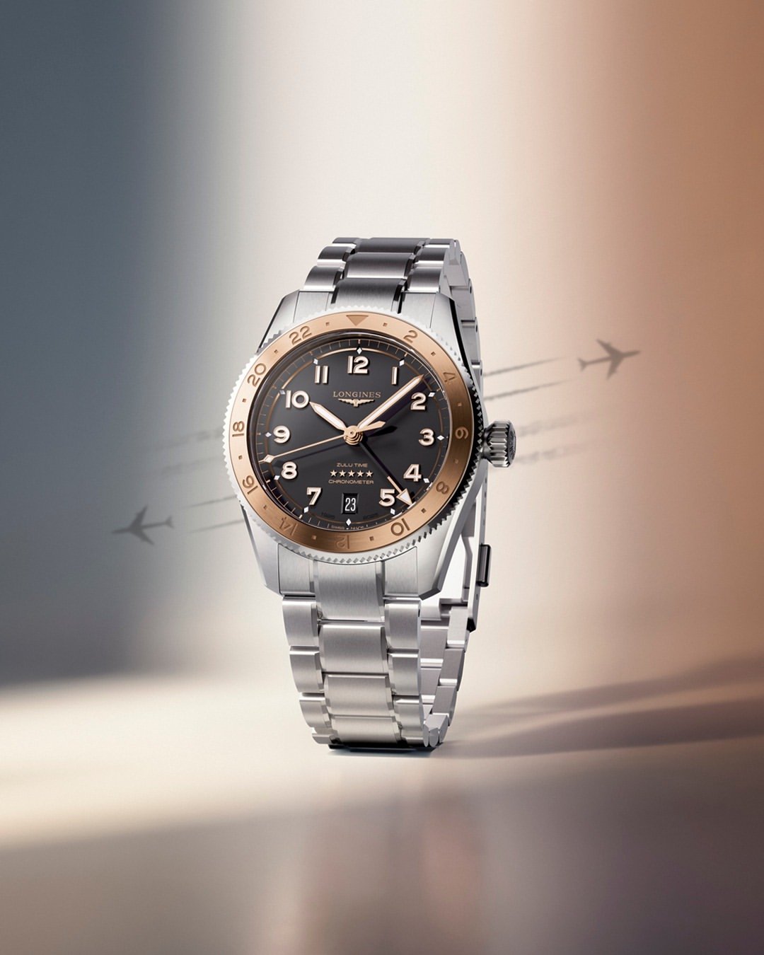Marking 100 years since the debut of Longines’ first dual-timezone wristwatch, the new Spirit Zulu Time 1925 blends heritage and innovation with a rose gold bezel, transparent caseback, and COSC-certified movement.