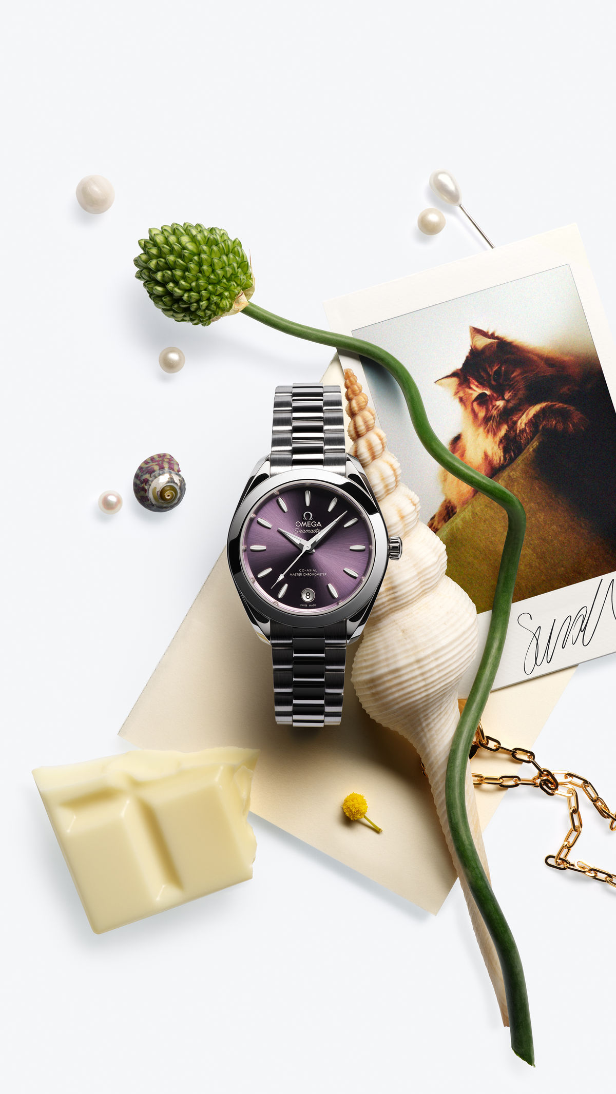 Adding to the variety, a linen-dial version in 18K Sedna™ Gold delivers warm tones with a contemporary twist. Omega also offers three dual-tone options: two stainless steel and 18K Moonshine™ Gold pieces with silver or white mother-of-pearl dials (both diamond-set), and one stainless steel and 18K Sedna™ Gold model with a rich brown dial accented by diamond hour markers.